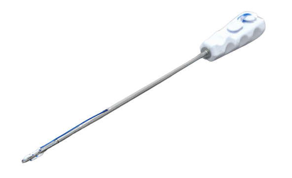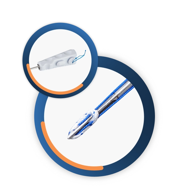 2. Se procede a soltar la sutura fiber 0.65 que se encuentra en el extremo distal del mango, se tiran de los extremos de la misma a modo de cerrar el ojal implantado, comprobamos fijación y procedemos a la extracción del mango del anclaje.