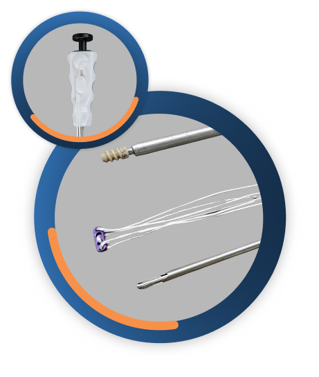 4. Continuar con la inserción del botón a través de su sistema de colocación. Una vez pasada la segunda cortical, se presiona el vástago ubicado en el extremo distal del mango, permitiéndole al botón ubicarse de forma transversal al túnel realizado.
