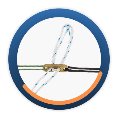 3. Fijación de botón, injerto y tornillo interferencial. Una vez que las suturas distales del endobutton atraviesan los túneles femoral y tibial, emparejamos las mismas para traccionar en conjunto a la sutura negra de fiber 0.65. Una vez apoyado el Enbok autoajustable KSM en cortical, se procede a izar el injerto traccionando una a una las suturas fiber 0.65 rayadas de modo tal que podamos ajustar el injerto dentro del túnel femoral.
