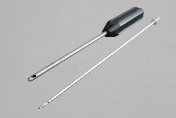Anclaje de impacto 3.0 mm de peek, con ojal doble sutura Fiber, mango largo anatómico descartable para uso artroscópico, diseñado para reparación de inestabilidad gleno humeral.